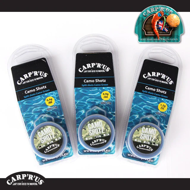Les Camo Shotz sont des poids de pincement polyvalents, spécialement conçus pour être utilisés sur du matériel de base. Grâce à leur revêtement spécial en deux couleurs différentes (marron ou vert), les Camo Shotz sont très bien camouflés dans l’eau, ne projettent aucun reflet et sont quasiment invisibles pour les carpes.