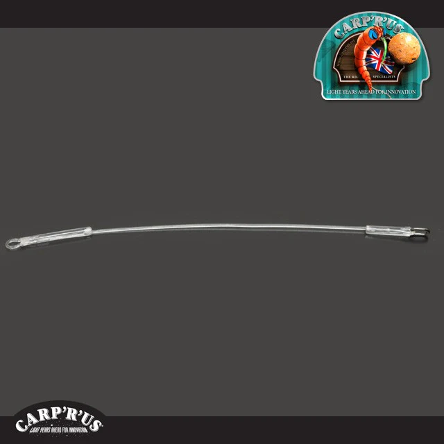 Les boucles collées à chaque extrémité sont produites exclusivement pour Carp’R’Us et sont plus solides que n’importe quel nœud ! L’anneau à une extrémité permet une fixation rapide au pivot à changement rapide Gizmo. L’œillet collé à l’autre extrémité permet de fixer le combo rig en utilisant la méthode boucle à boucle (voir photos).