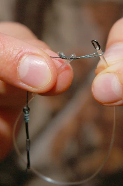 Fixation du combo rig en utilisant la méthode boucle à boucle (voir photos).