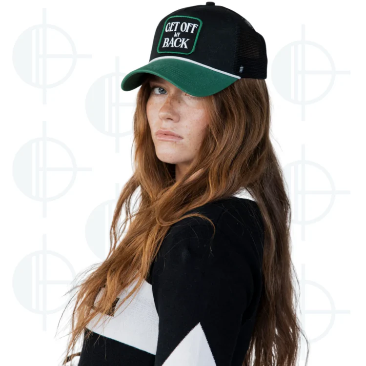 Affiche ton style avec assurance grâce à la casquette Get Off My Back en blanc et noir. Inspirée du look trucker classique, cette casquette est aussi à l’aise sur le terrain de golf qu’en dehors. Son design aéré et son attitude assumée en font un incontournable de ta collection.