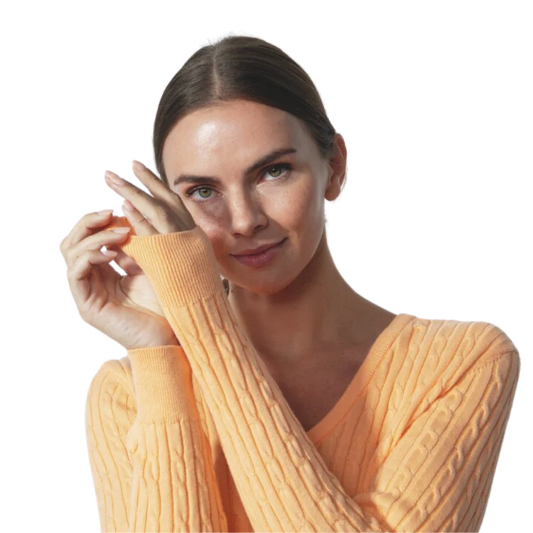Sublimez votre garde-robe avec notre exquis Pull Madelene, méticuleusement conçu pour la femme moderne qui valorise à la fois le style et le confort. Fabriqué avec précision, ce vêtement ajusté arbore un motif classique en tricot torsadé et un décolleté en V flatteur, incarnant l’élégance et la sophistication.