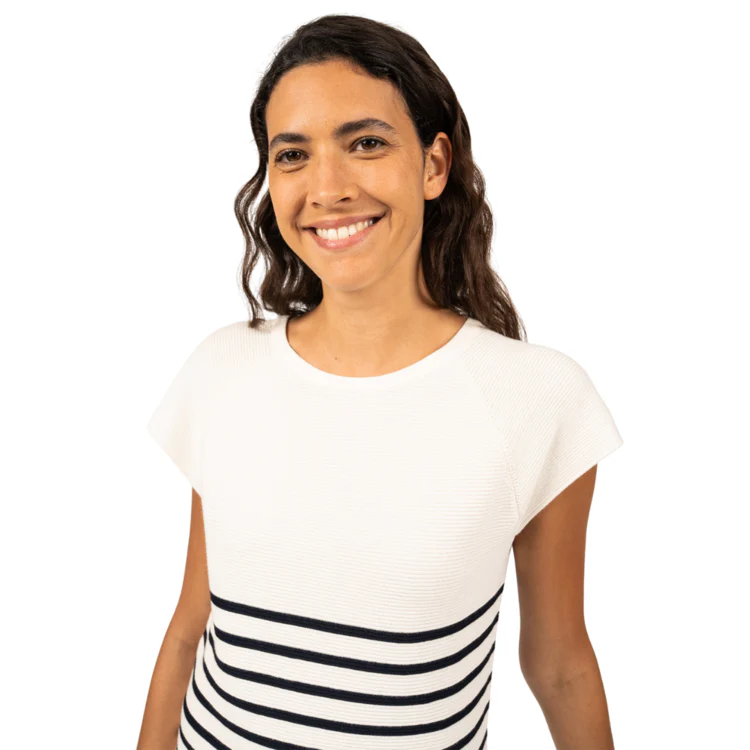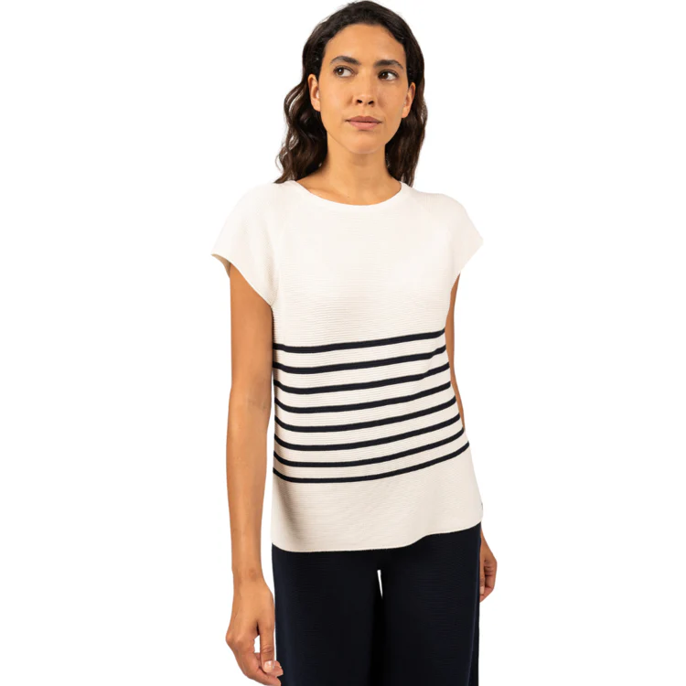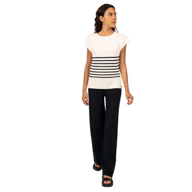 Quand la créatrice parisienne Isabelle Ballu fait un collab avec Saint-James, le résultat est toujours wow! Succombez a ce haut en coton Eva , agencez le avec le pantalon a jambes larges Ponton pour un total look, 100% tendance printemps-été 2024.