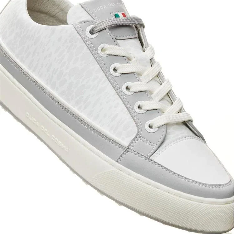 Le soulier de golf Garda de Duca Del Cosma est le choix idéal pour les femmes qui cherchent une chaussure de golf subtile et originale. Fabriquée à partir de microfibre recyclable douce, cette chaussure est dotée d’un subtil et original ton de gris clair avec des imprimés animaliers, qui ajoutent une touche de sophistication et de style à votre tenue de golf.