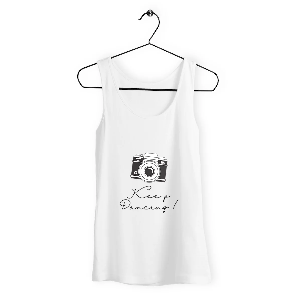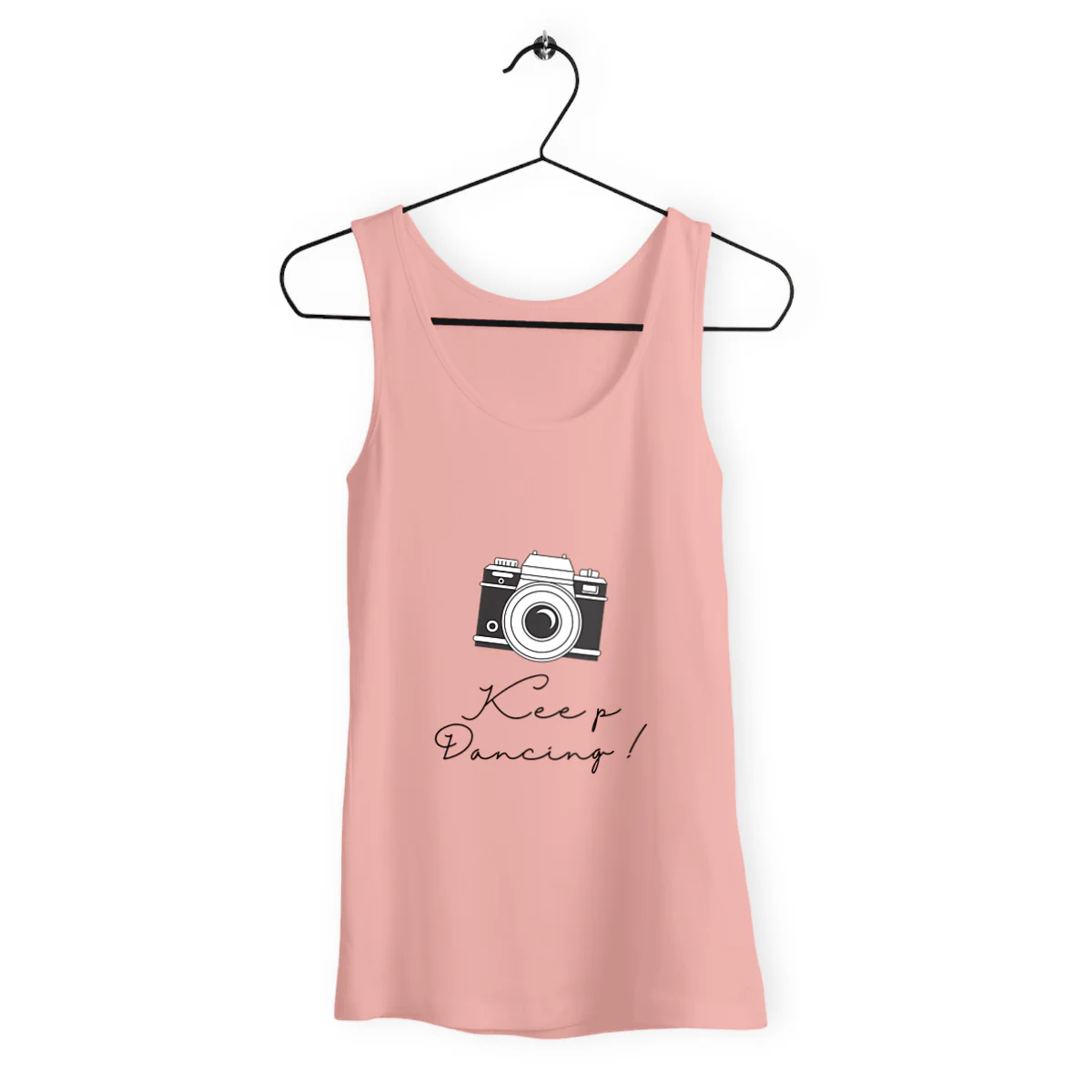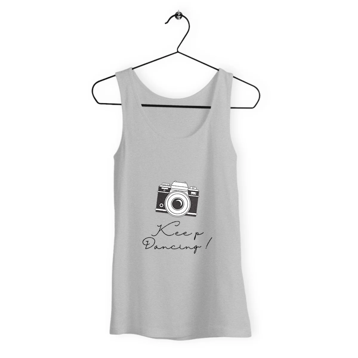 Restez positif et à l’aise tout en gardant le sourire grâce à notre débardeur ample Keep dancing pour femme. Son message inspirant et son confort absolu vous motivent à continuer à danser et profiter de la vie. Gardez un look décontracté tout en propageant la bonne humeur.