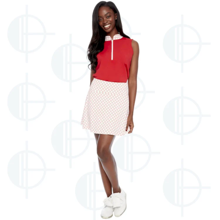 À la fois élégant et fonctionnel, ce haut sans manches Velocity Swing Control est conçu pour les golfeuses recherchant style et performance. Son col Mandarin raffiné et son imprimé géométrique subtil ajoutent une touche sophistiquée, tandis que son tissu léger et respirant assure un confort optimal sur le parcours comme en dehors.