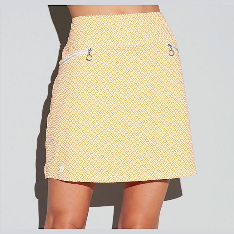 Jupe-short en tricot à enfiler – 2 poches avant zippées et 1 poche arrière zippée sur la jupe – Sous-short en maille – Longueur de côté de 18″ sur la taille M -Polyester/Élasthanne – Tissu antimicrobien et évacuant l’humidité pour vous garder au frais et au sec – Finition UPF 50+ pour la protection solaire