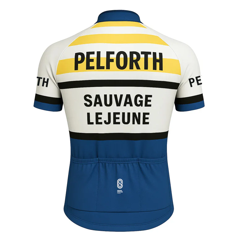 Maillot de Cyclisme rétro Pelforth Lejeune – Blanc/Blue