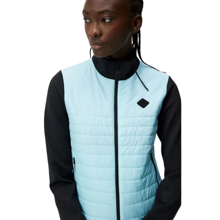 Découvrez notre veste contemporaine Martina Quilt Hybrid, confectionnée dans un matériau double jersey. Le rembourrage contrastant en PrimaLoft recyclé sur la poitrine et les épaules n’est pas seulement doux, extensible et à séchage rapide, mais il confère également un look distinctif à la pièce. Dotée d’une fermeture à glissière avant Vislon à double sens avec tirettes de logo, d’une bande élastique avec logo et d’un logo Bridge en silicone pour une touche signature.