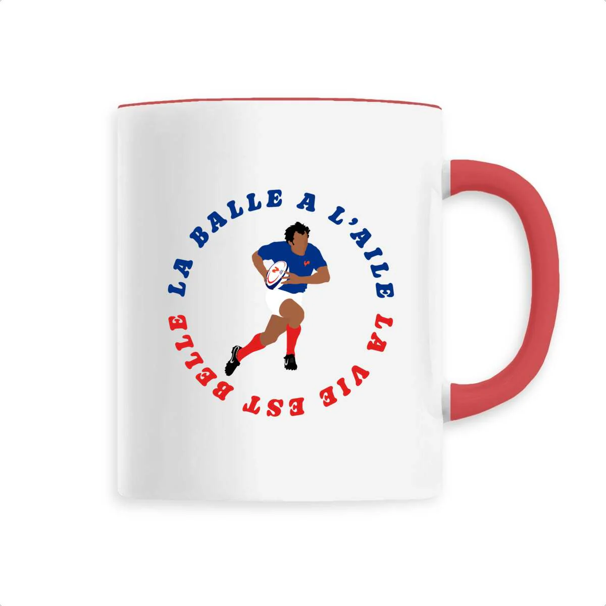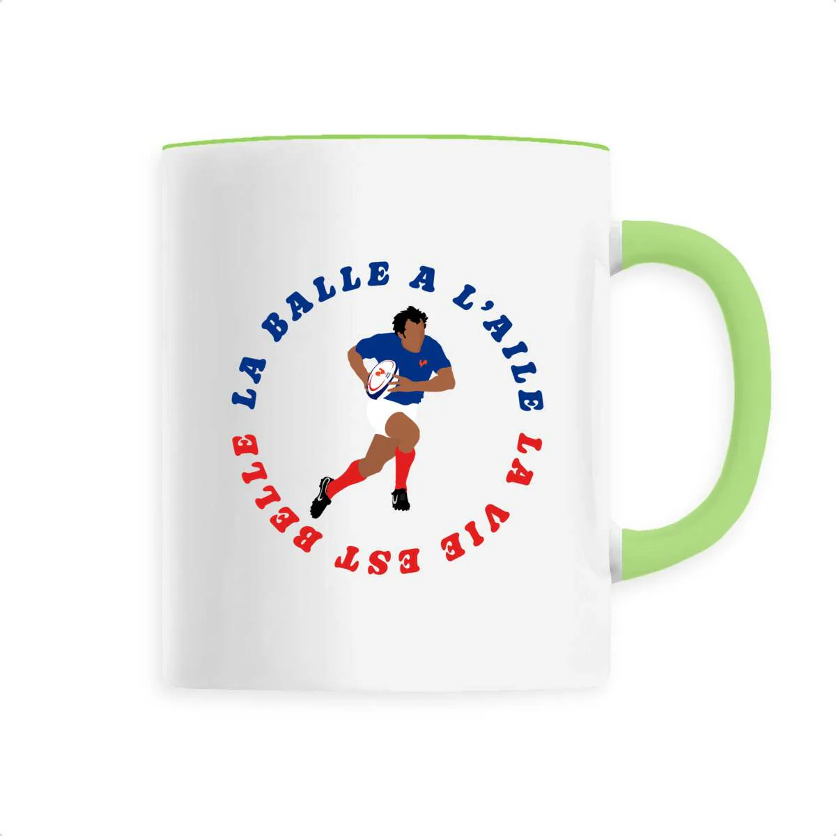 Mug céramique – Anse colorée – 330 ml – La balle à l’aile