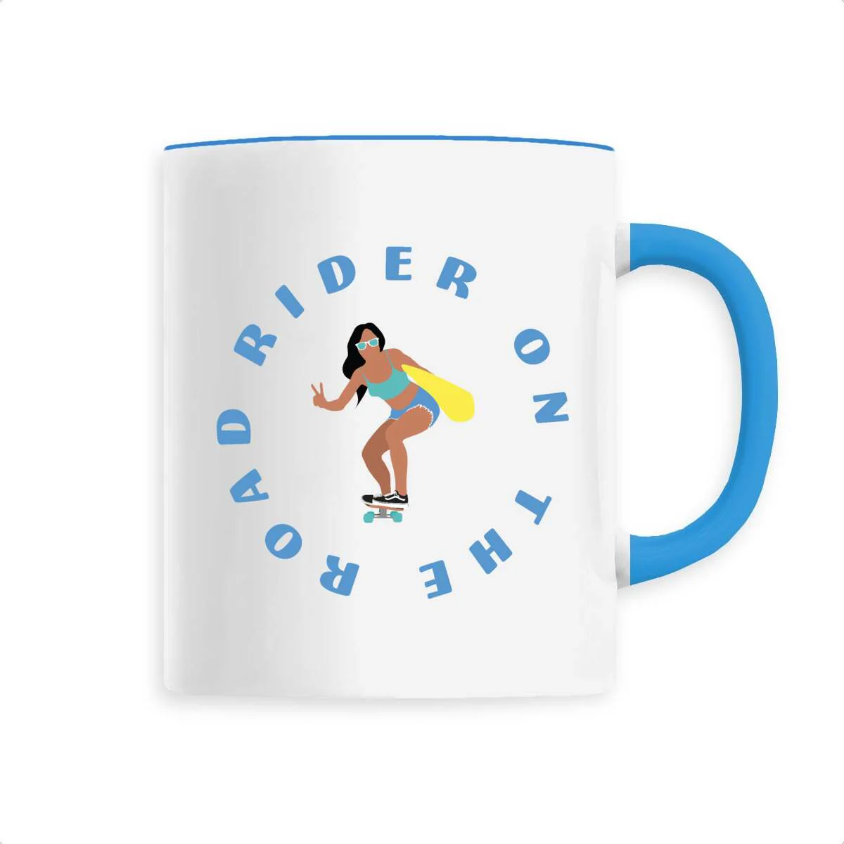 Mug céramique – Anse colorée – 330 ml – Rider on the road