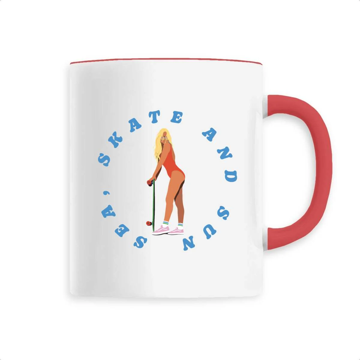 Mug céramique – Anse colorée – 330 ml – Sea, Skate and Sun