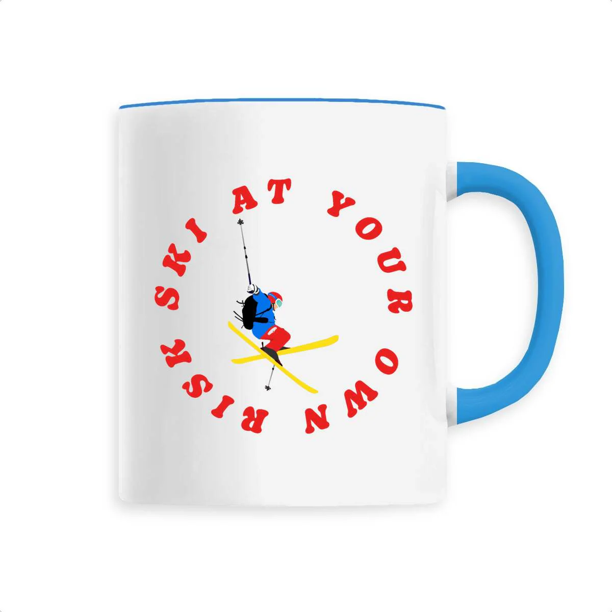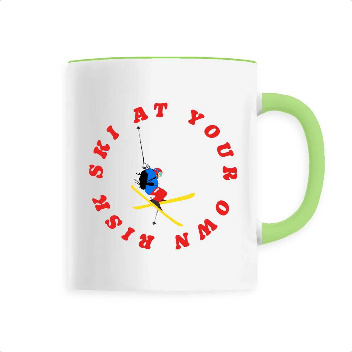 Mug céramique – Anse colorée – 330 ml – Ski at your own risk