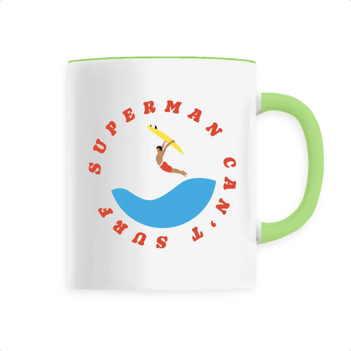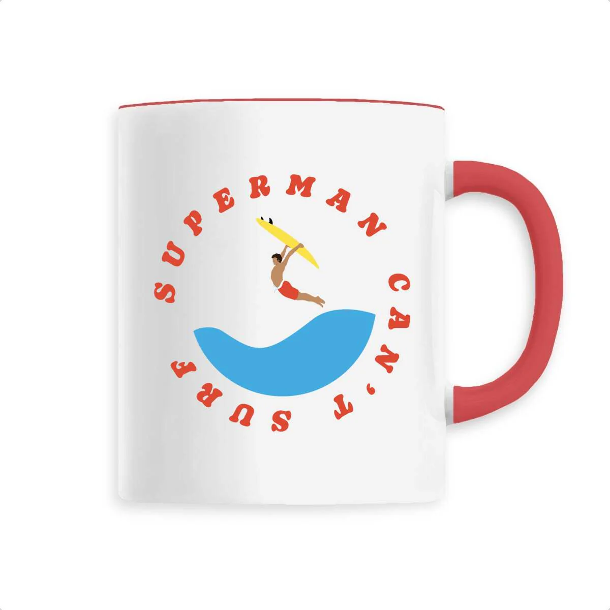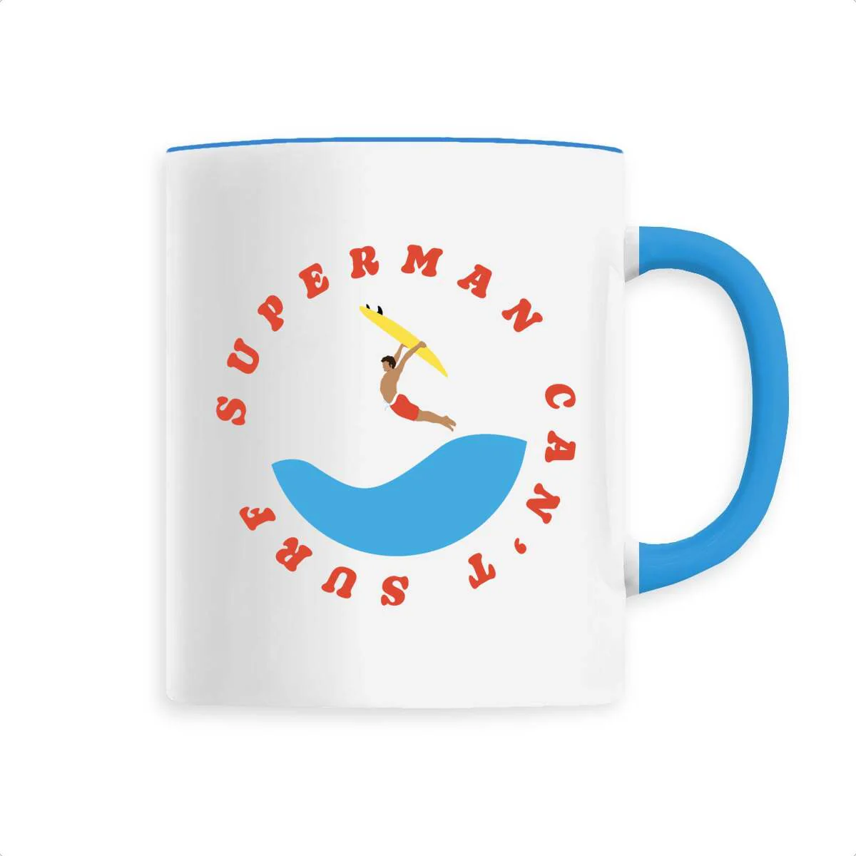 Mug céramique – Anse colorée – 330 ml – Superman can’t surf