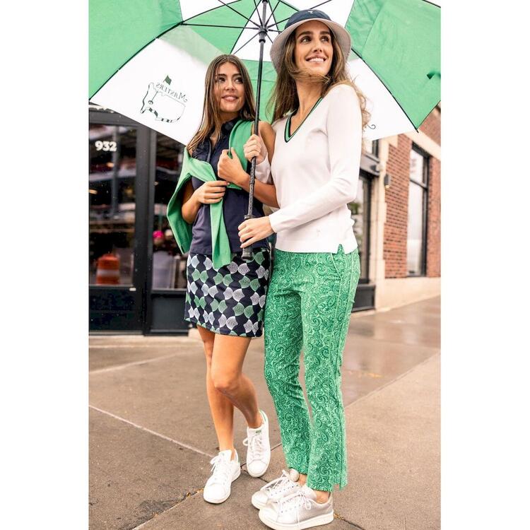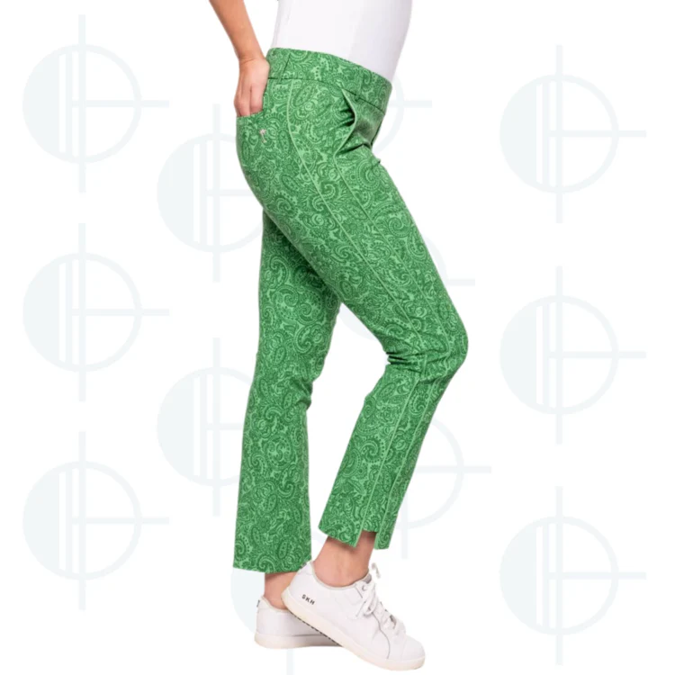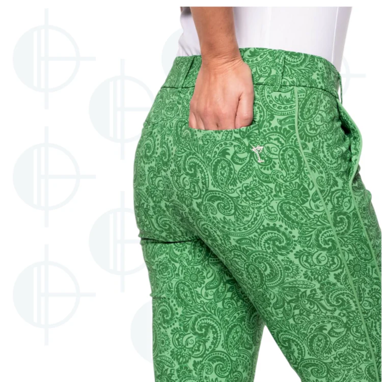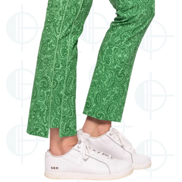 Alliez élégance et performance avec le pantalon cheville Stretch Golftini. Son imprimé paisley raffiné et son tissu résistant à l’eau en font une pièce à la fois stylée et fonctionnelle. Sa taille élastique et son zip latéral assurent un confort absolu, parfait pour une journée sur le parcours ou une sortie décontractée.