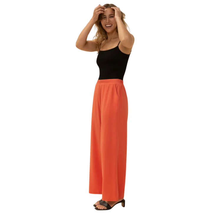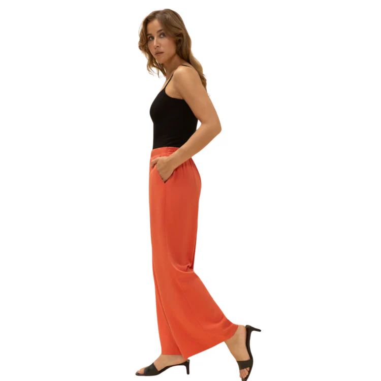 Qui a dit que confo n’allait pas avec style? Adoptez sasn tarder ce pantalon fluide à jambes larges pour femme, de couleur orange et faites tourner les têtes.