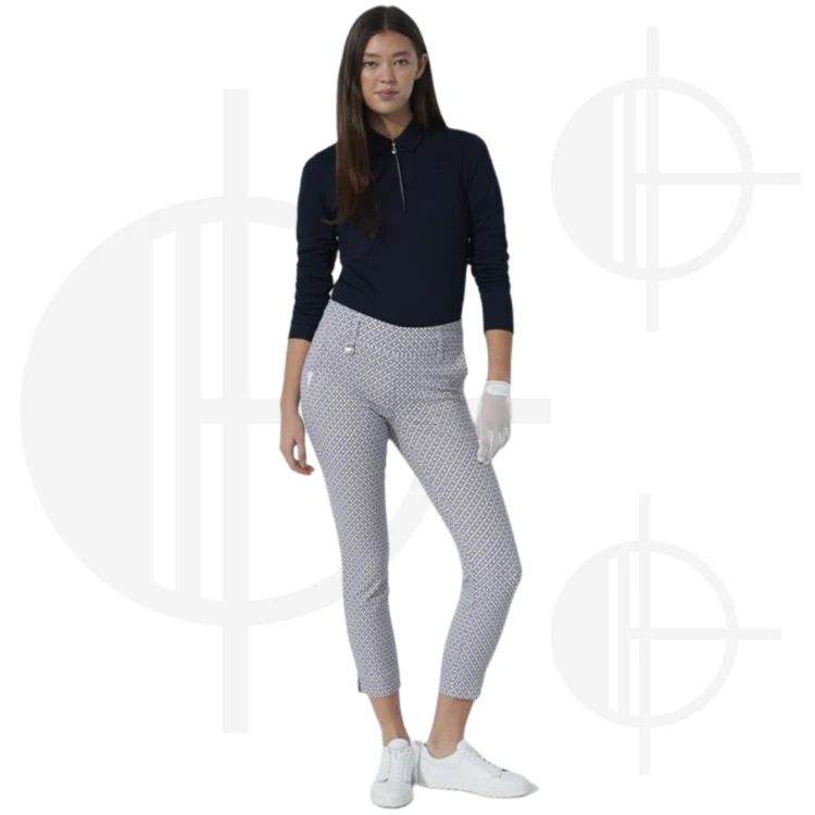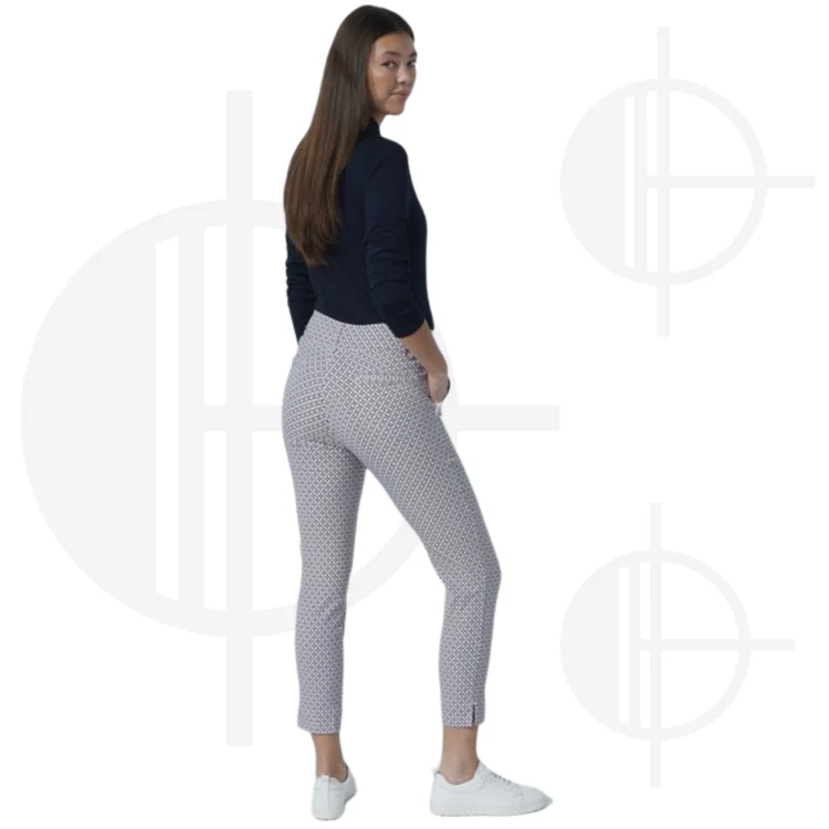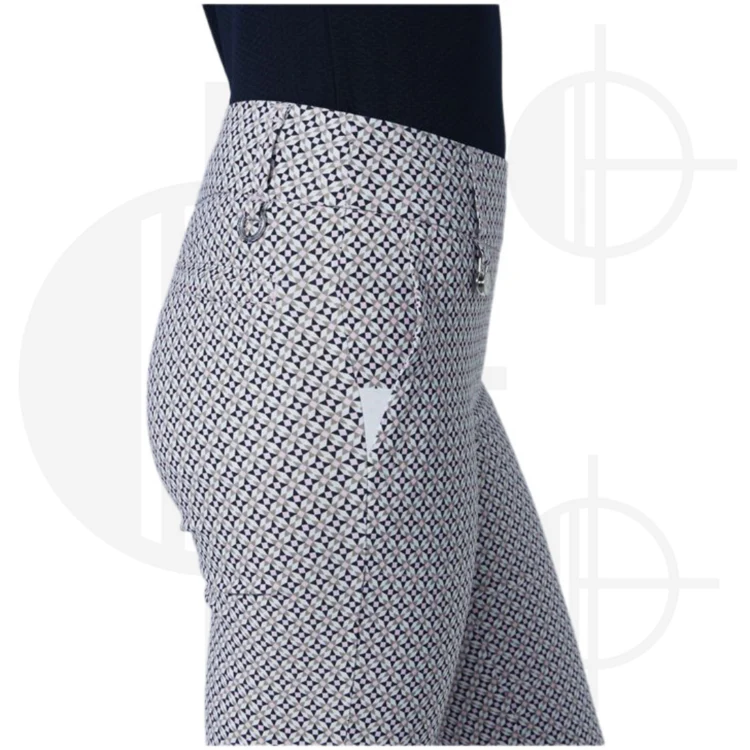 Affichez un style artistique et raffiné avec le pantalon Magic Motif High Water de Daily Sports. Confectionné dans un tissu ultra extensible, ce pantalon à coupe étroite combine des teintes de blanc, marine, rose et beige dans un motif intégral sophistiqué. Confortable, élégant et polyvalent, il est parfait pour le golf comme pour vos sorties quotidiennes.