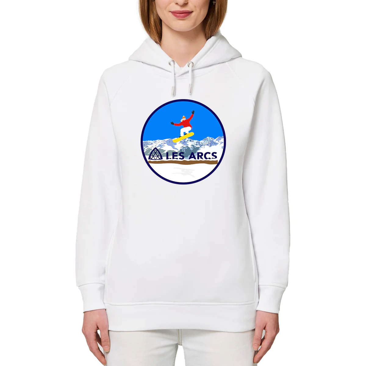 Sweatshirt à capuche Femme – Poches latérales – Coton BIO – Les Arcs Snow W
