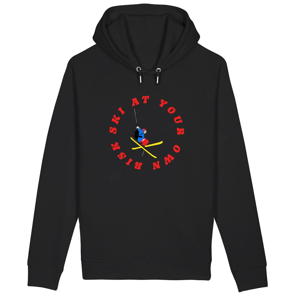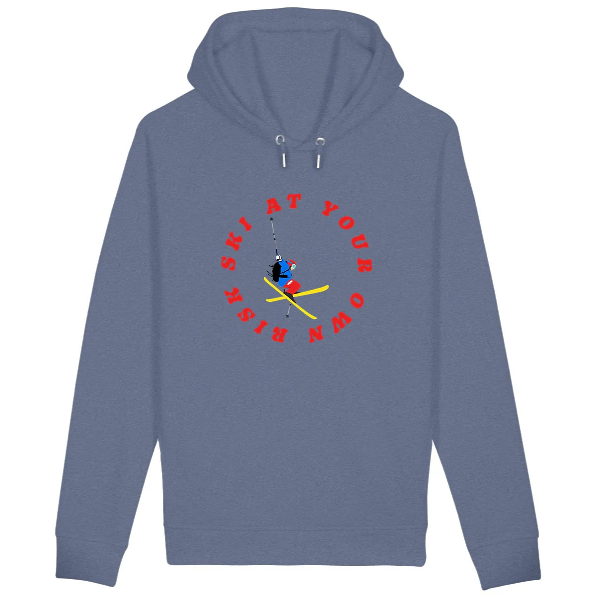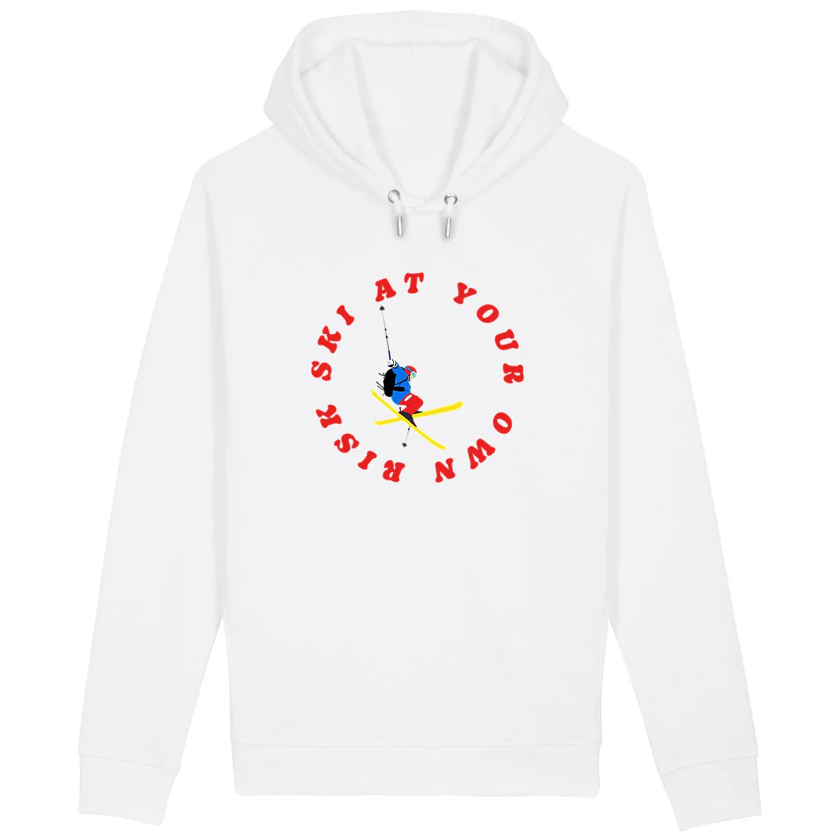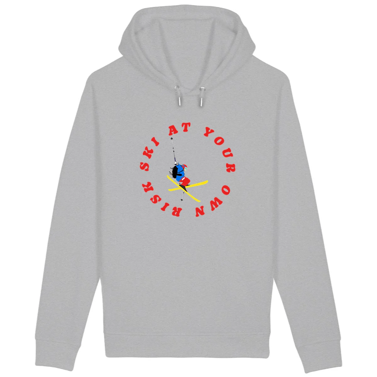 Sweatshirt à capuche Homme – Poches latérales – Coton Bio – Ski at your own risk