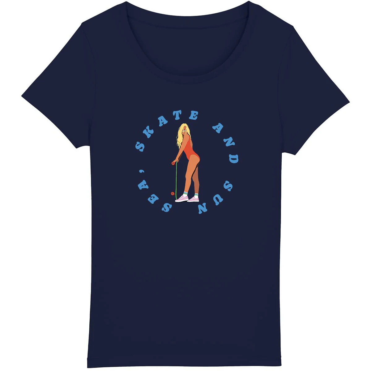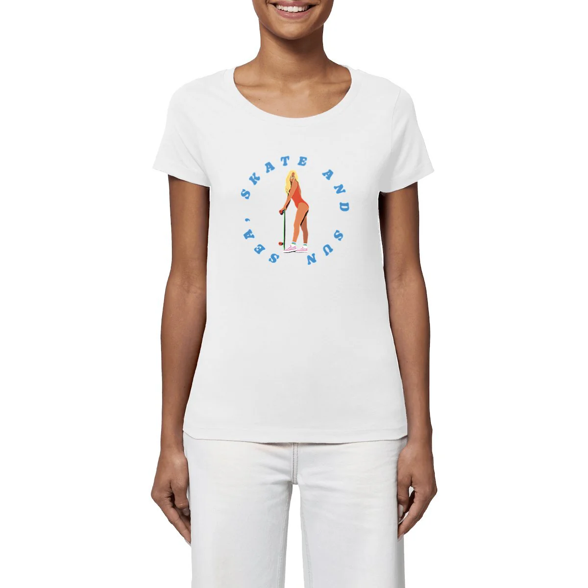 T-shirt Femme – Coupe Classique -100% Coton BIO – Sea, Skate and sun