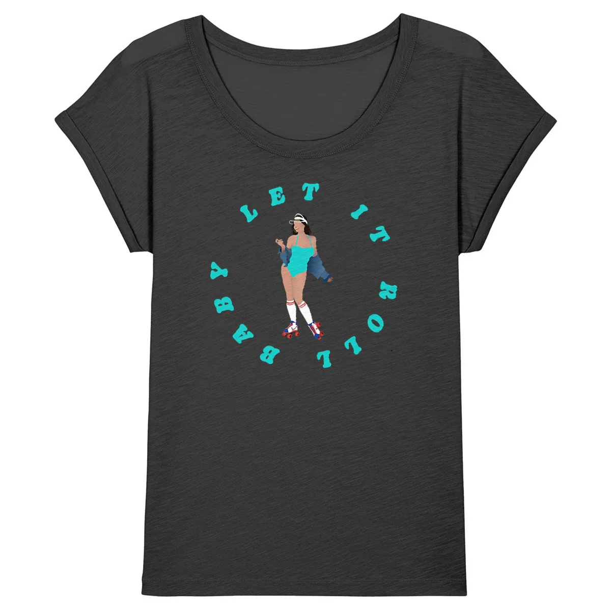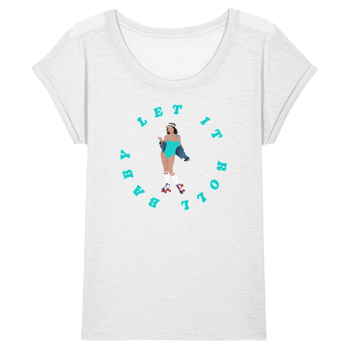 T-shirt Femme – Manches retroussées – 100% Coton BIO – Let it roll baby