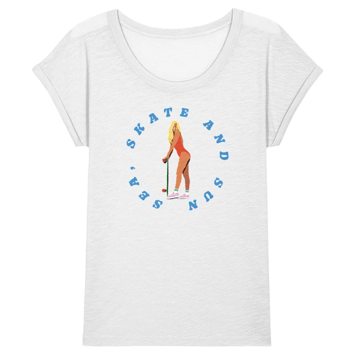T-shirt Femme – Manches retroussées – 100% Coton BIO – Sea, Skate and Sun