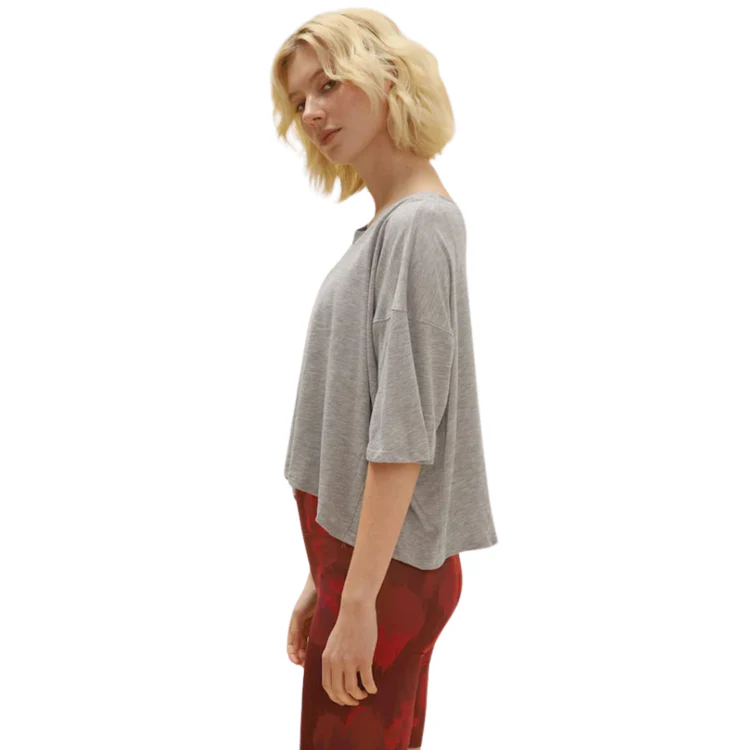 Ce t-shirt, basique essentiel de toute garde-robe, sera un de vos préférés pour sa coupe surdimensionnée et sa silhouette écourtée et bien sûr, ultra doux , vous serez confo tout au long de la journée.