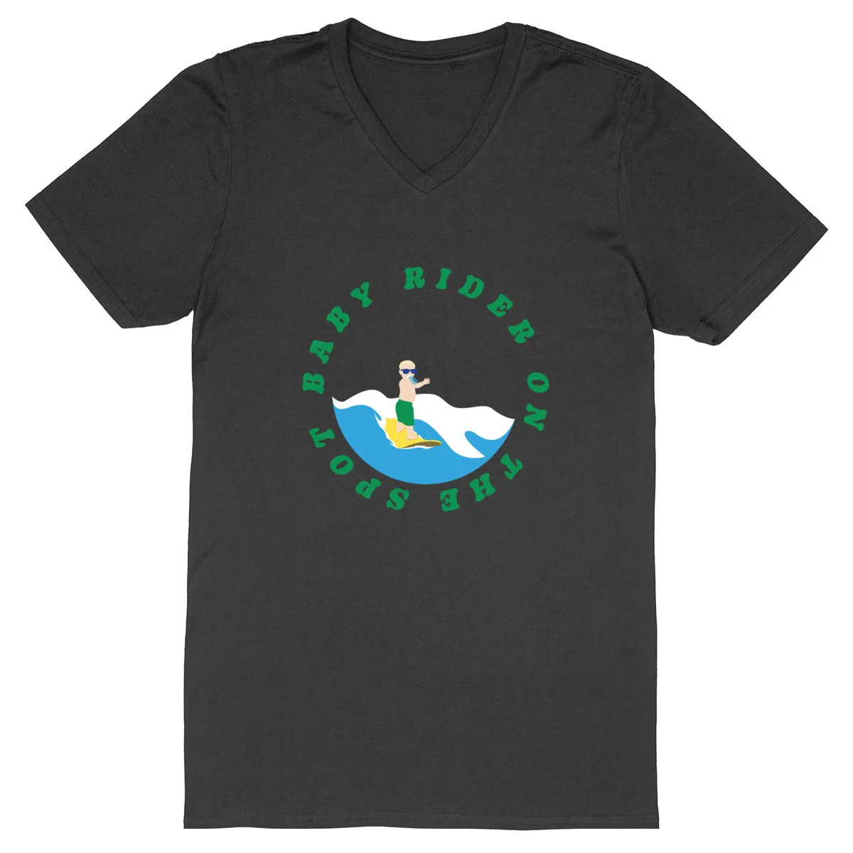 T-shirt Homme – Col V – 100% Coton BIO – Baby rider on the spot