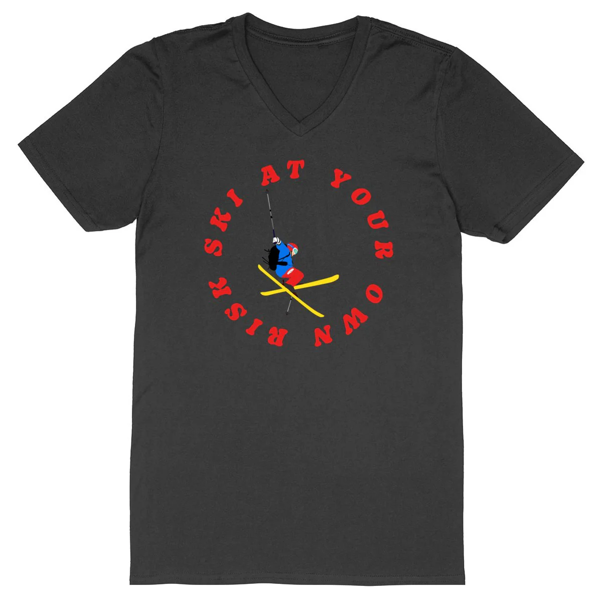T-shirt Homme – Col V – 100% Coton Bio – Ski at your own risk