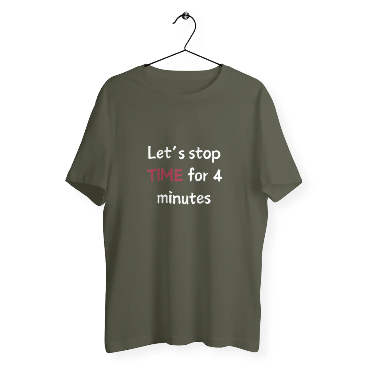 Invitez votre partenaire à danser et à vous perdre ensemble dans l’instant présent avec ce T-shirt léger et unisexe « Stop time ». Profitez de 4 minutes de magie le temps d’une chanson.