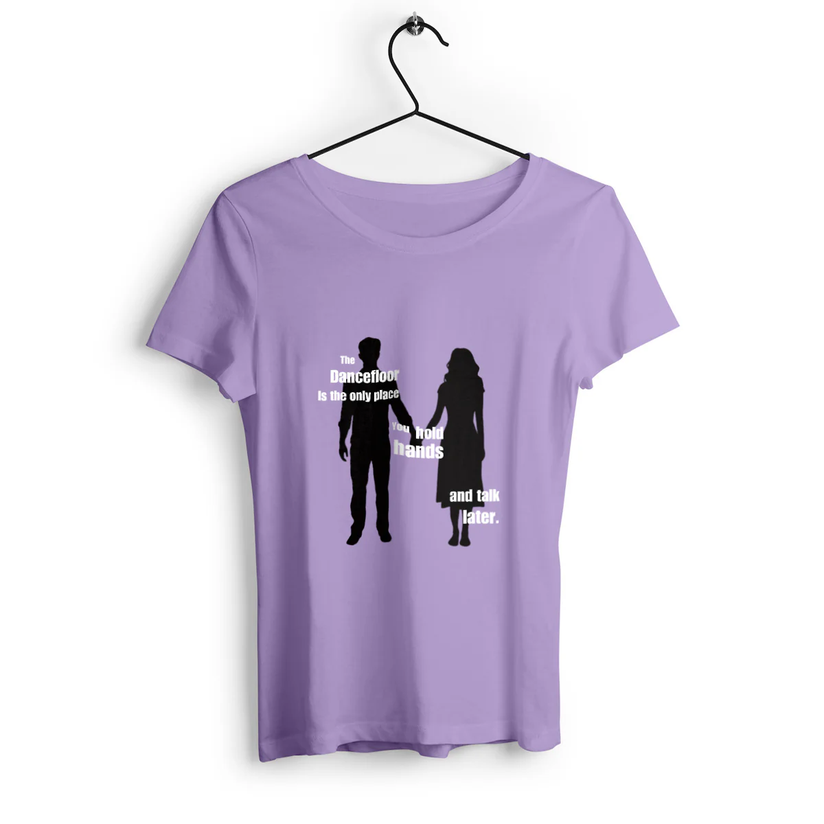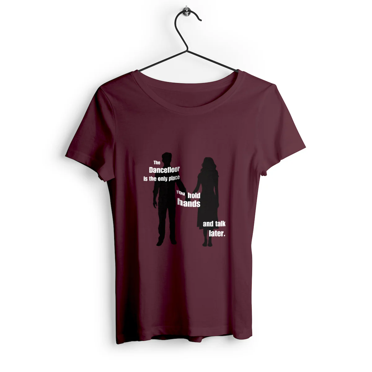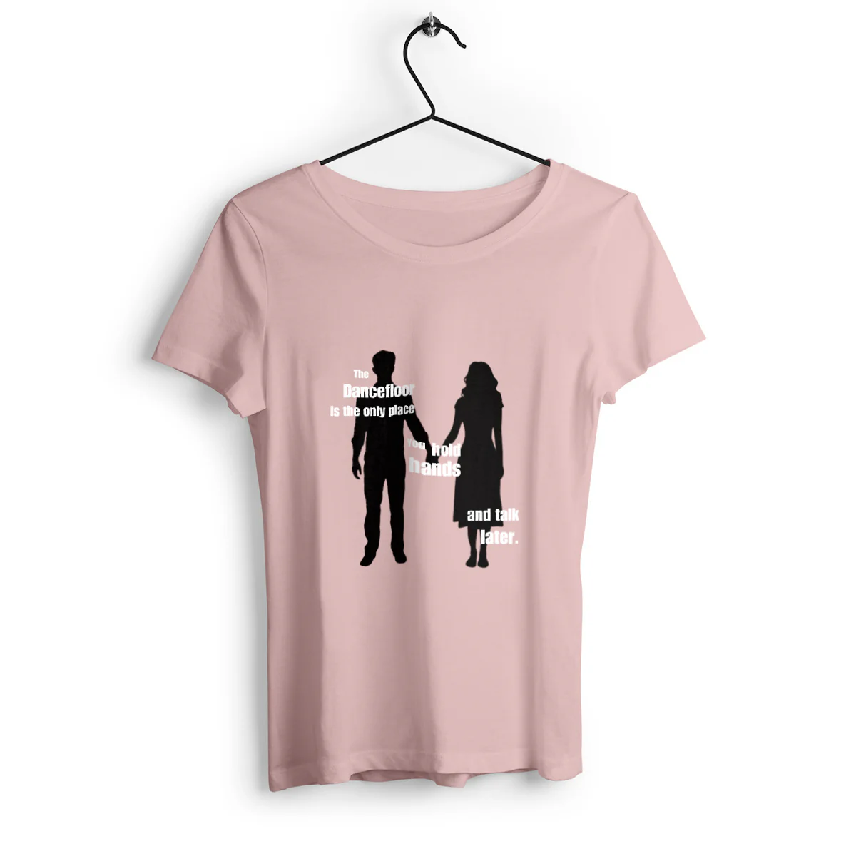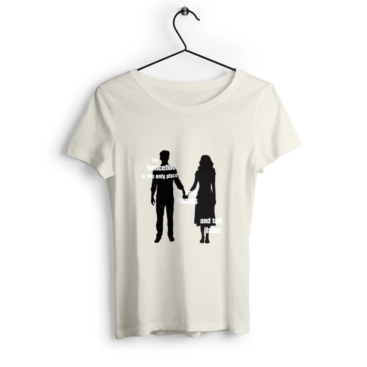 Laissez-vous emporter par notre T-shirt premium « Dance now talk later » pour femme. Avec un design unique et original alliant humour et romantisme, il sera parfait pour vos soirées sur la piste de danse. Prenez des risques, dansez sans tabous et vivez pleinement vos aventures !